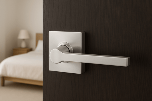 Square Privacy Door Lock Solstice Lever in Satin Chrome